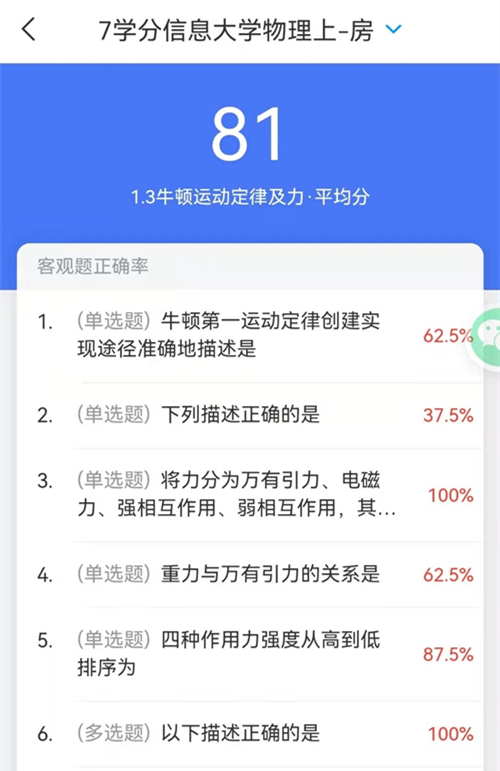 此外,房毅还自建了学生个性化学习课程,提前将相关课程的授课录屏、授课视频挂在学校的“学习通”平台上,并着重围绕基本概念、基本规律,精心设计了章节自测。在直播前,他要求学生预习教学视频,完成线上测试。而后,他会从线上获取学生的学情数据,如高频错题、互动情况等,准确把握学生的学习状况及学习效果,并将课程内容的重点、难点与学生反馈的学习薄弱点相结合,设计和调整即将到来的直播课堂教学内容。