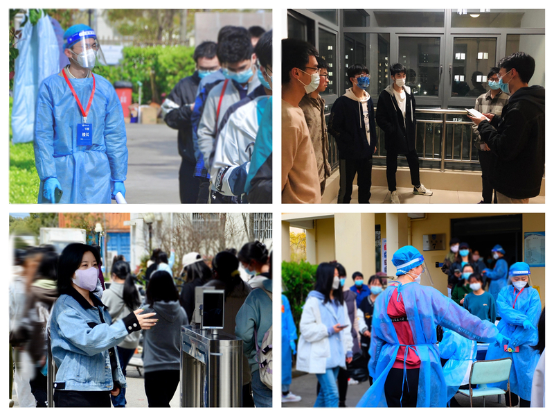 自奉贤校区闭环管理以来,数学学院辅导员李莹、林一民一直驻守奉贤校区,在准确排摸动态数据、召集楼层长会议、组织学生核酸检测、及时核对核酸数据、汇总反馈学生需求等工作中都有着他们忙碌的身影。