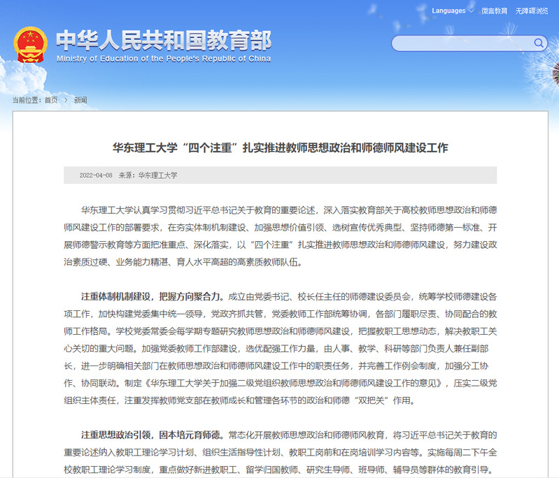 此次稿件由党委教师工作部提供,党委办公室编写上报教育部。