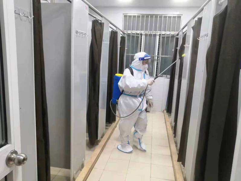 从扣兰是5舍的保洁员,她小小的身躯里仿佛有大大的能量。作为一名保洁员,从阿姨主要负责宿舍公共区域的保洁消毒工作。在宿舍封闭管理期间,生活垃圾量是平日的3到4倍,身材瘦小的她总是忙碌地提着垃圾袋从上往下搬运,每天两次以上的日常消毒工作更是从不落下,为了楼内同学的安全保质保量地完成。这些保洁活儿不仅要克服体力上的困难,还有防护服带来的不适。“现在每天的工作量很大,流汗很多,‘大白’穿在身上捂着不透气,感觉像缺氧一样,但我还是要克服眼前的困难,做好自我防护。”