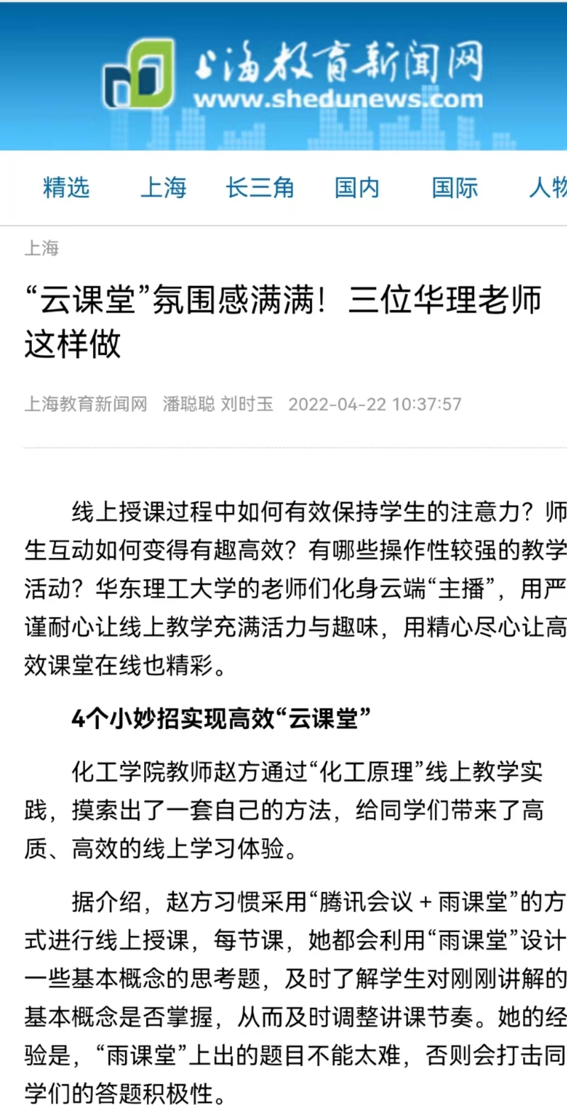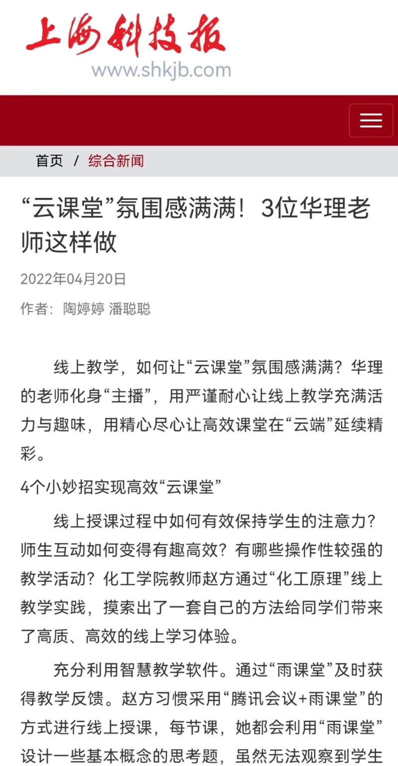 【上海科技报】“云课堂”氛围感满满!3位华理老师这样做