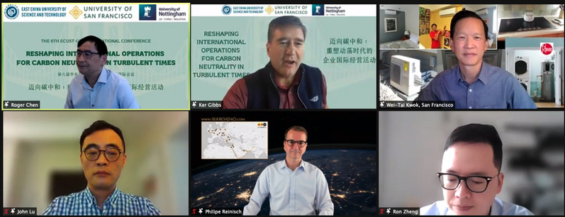 旧金山大学Stephen Roddy教授、Adrienne Johnson教授和William Riggs教授,R20 Regions of Climate Action非盈利组织Yufu Cheng主席,宁波诺丁汉大学商学院Peter Hofman教授和加利福尼亚大学圣克鲁兹分校客座教授Yuwei Shi博士,基于加利福尼亚的实践经验和教训,进一步讨论了通过国内和国际合作迈向碳中和的路径。