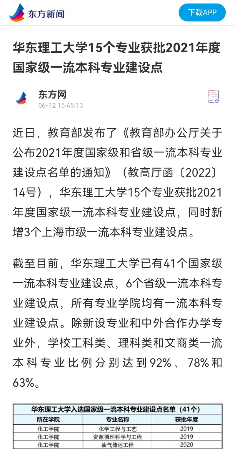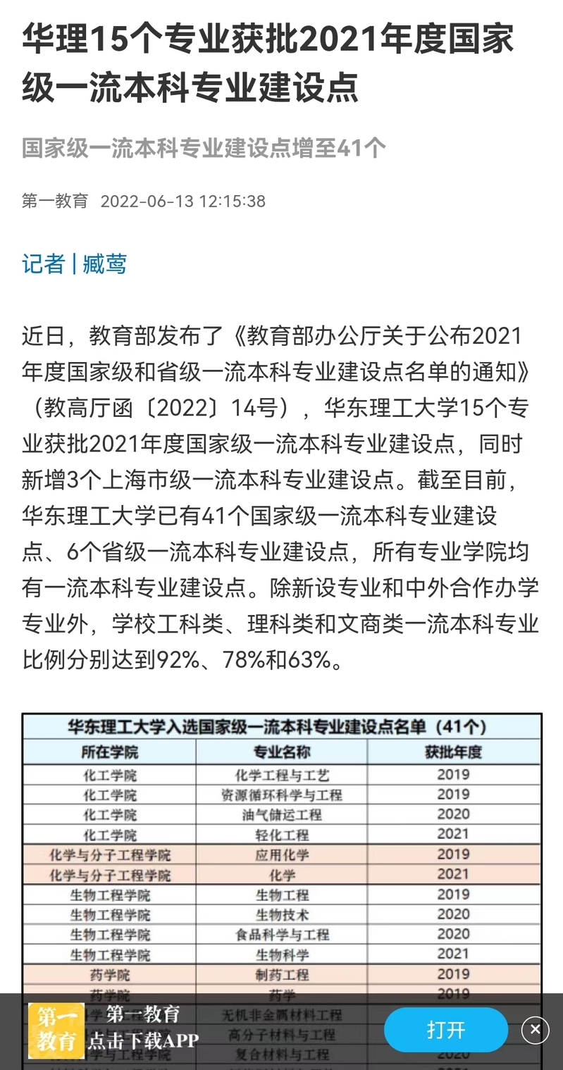 【第一教育】华理15个专业获批2021年度国家级一流本科专业建设点