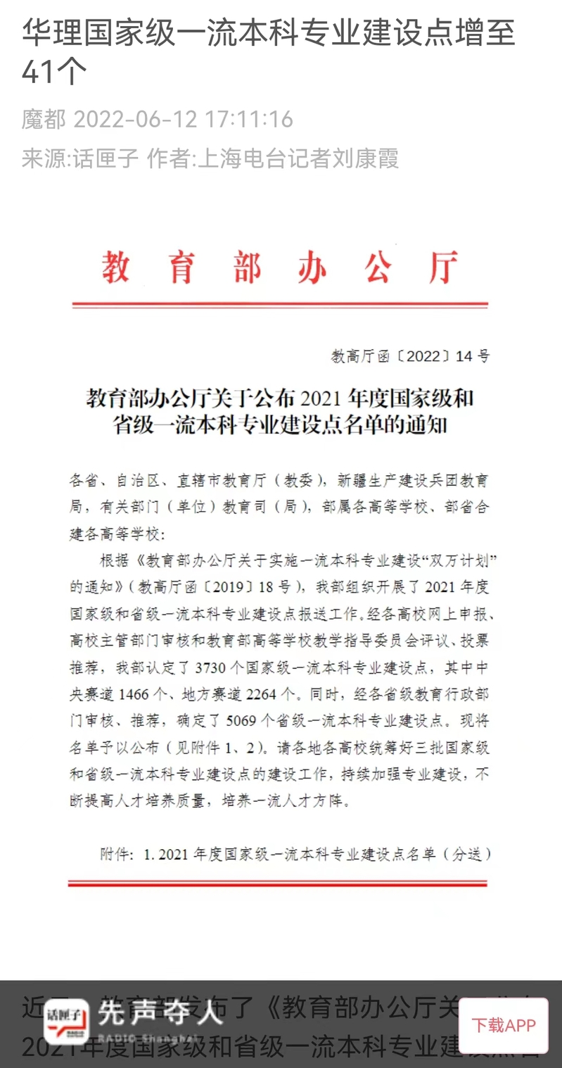 【话匣子】华理国家级一流本科专业建设点增至41个