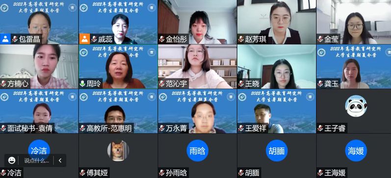 7月6日至7月7日,高等教育研究所2022年全国优秀大学生暑期夏令营活动在线上举行。经过对报名学生教育背景、学业水平、科研能力、综合素质等方面的审查,最终来自中国地质大学、南京信息工程大学、石河子大学、曲阜师范大学、上海外国语大学等高校的11名优秀大学生成功入围。