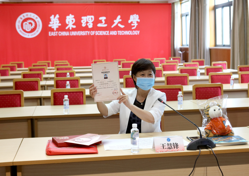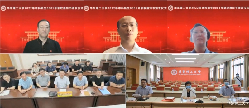 王慧锋对即将加入到华理大家庭的王何宇同学表示欢迎,展示介绍了2022年新生录取通知书及华理师生精心设计的周边礼包。今年,为庆祝建校70周年,学校还为录取通知书编号为70、1952、2022的新生准备了同样的周边礼包。