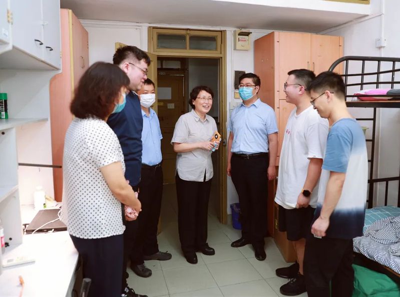 校领导们现场指导搬迁工作,与学院负责人一起优化完善搬迁细节,走进学生宿舍,与同学们亲切交谈,关心地询问他们的就业去向或科研学习等情况,表达学校对同学们的关心和期望。