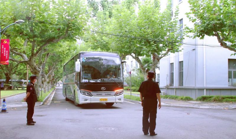 5:40,奉贤校区,第一批车队在淅淅沥沥的小雨中出发;徐汇校区,安保、后勤等系统的工作人员各就各位,做好了全面的接车准备。