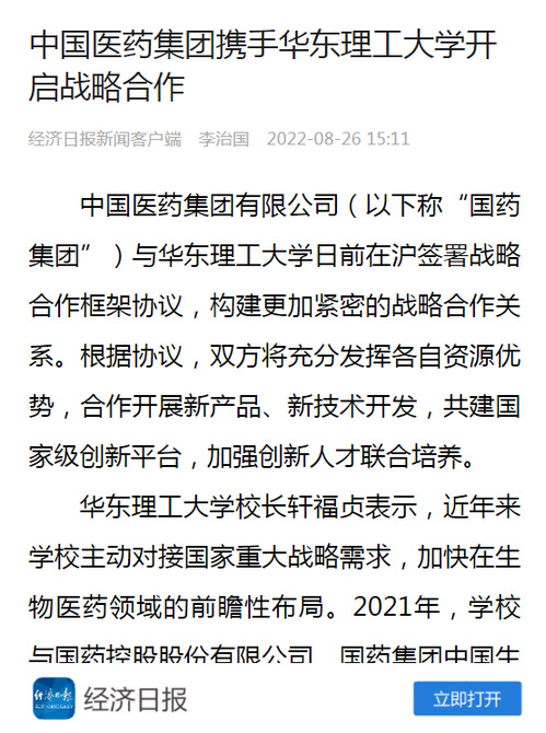 【媒体报道集锦】华理与国药集团签约合作受媒体关注