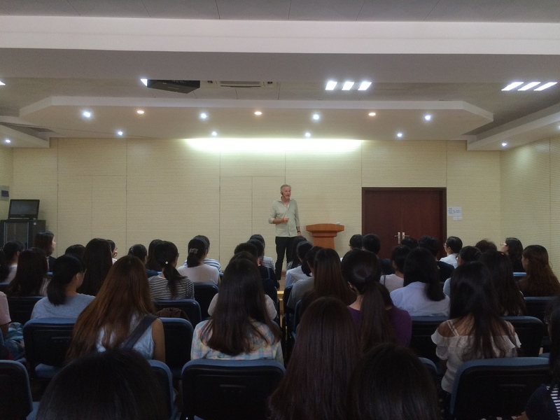 On invitation of German Department of the School of Foreign Languages, ECUST, Mr. Folke Tegetthoff , a famous Austrian fairy tale writer, delivered a lecture entitled “Art of Listening” (Schule des Zuhörens) to teachers and students of German Department at Fengxian Campus, ECUST on September 26th, 2016. The famous Austrian writer shared with the audience the importance of listening to modern people.