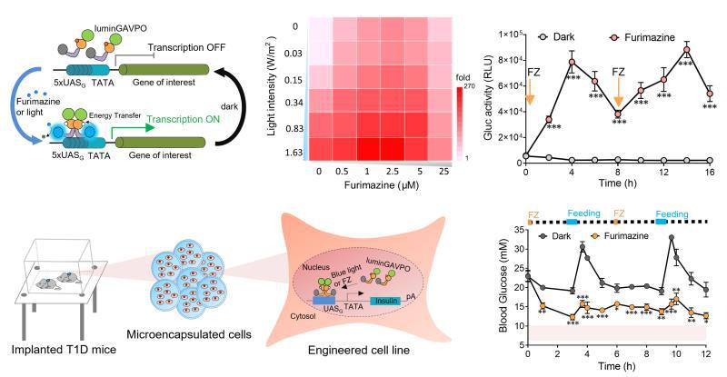 Recently, the research team of Professor Yang Yi from the State Key Laboratory of Bioreactor Engineering and the Interdisciplinary Research Center of Optogenetics and Synthetic Biology published a research article entitled “A synthetic bret-based optogenetic device for pulsed transgene expression enabling glucose homeostasis in mice” in the international authoritative academic journal Nature Communications, reporting a new gene expression regulation technology that can pulse activate gene expression in mammalian cells and mice.